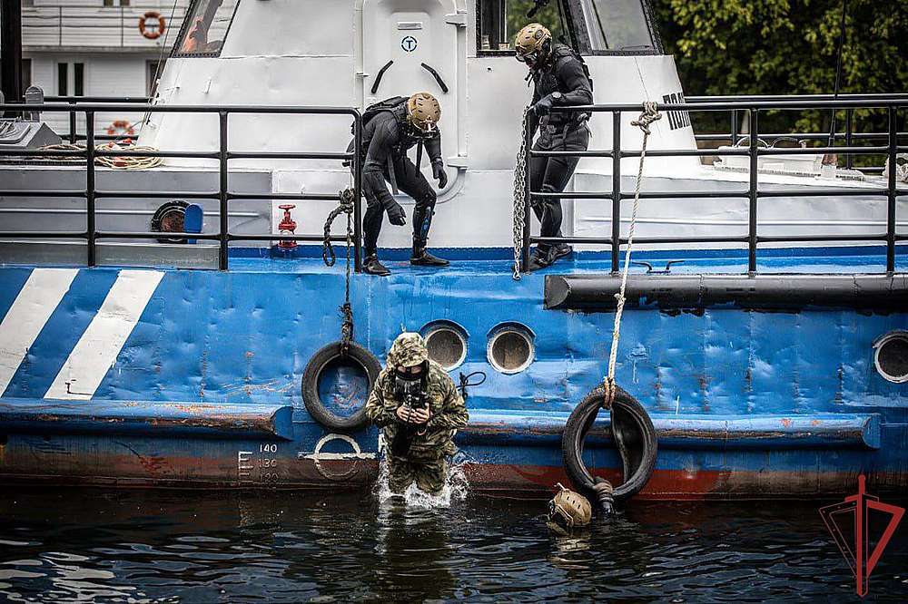 В рамках учебно-методического сбора с командирами ОМОН (на транспорте) территориальных органов Росгвардии на базе ОМОН «Меч» состоялось практическое занятие по отработке совместных действий по освобождению судна, захваченного условными преступниками в акватории Москвы-реки.